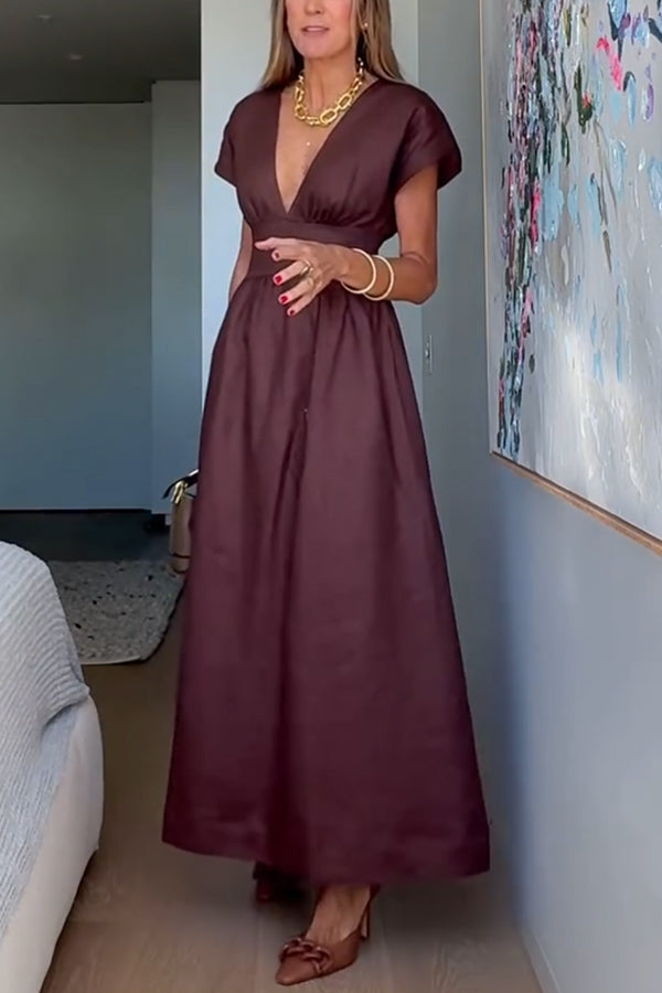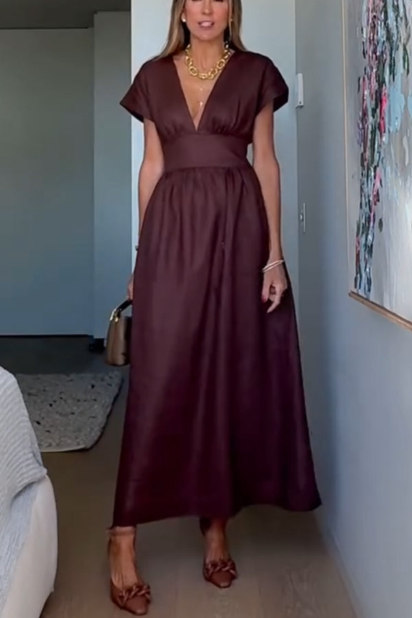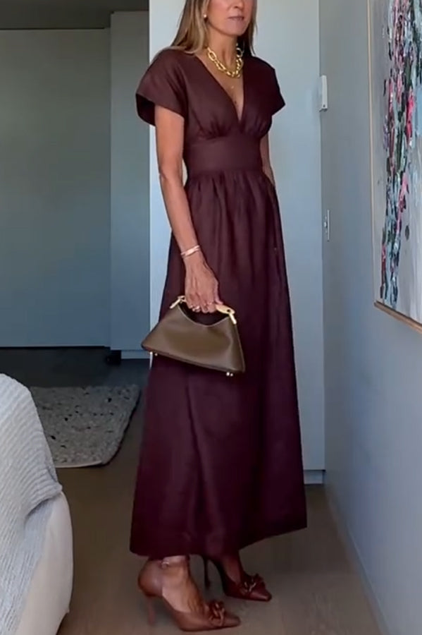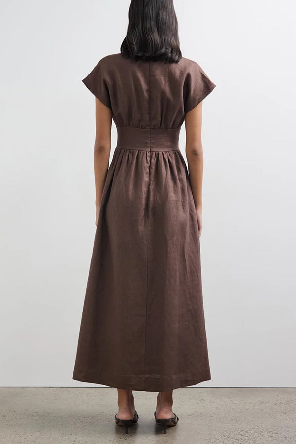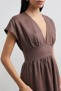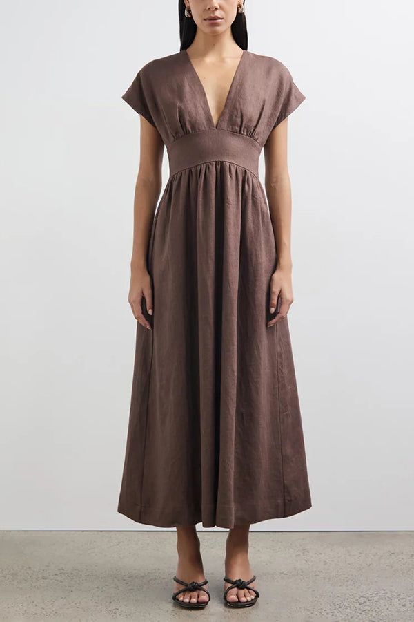 Della Linen Blend Short Sleeve Fitted Waist Maxi Dress