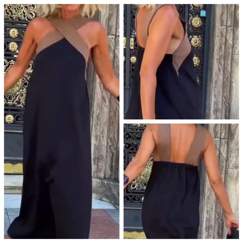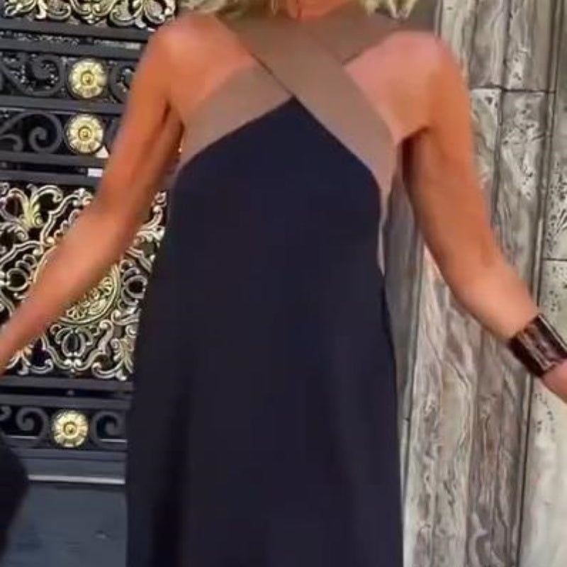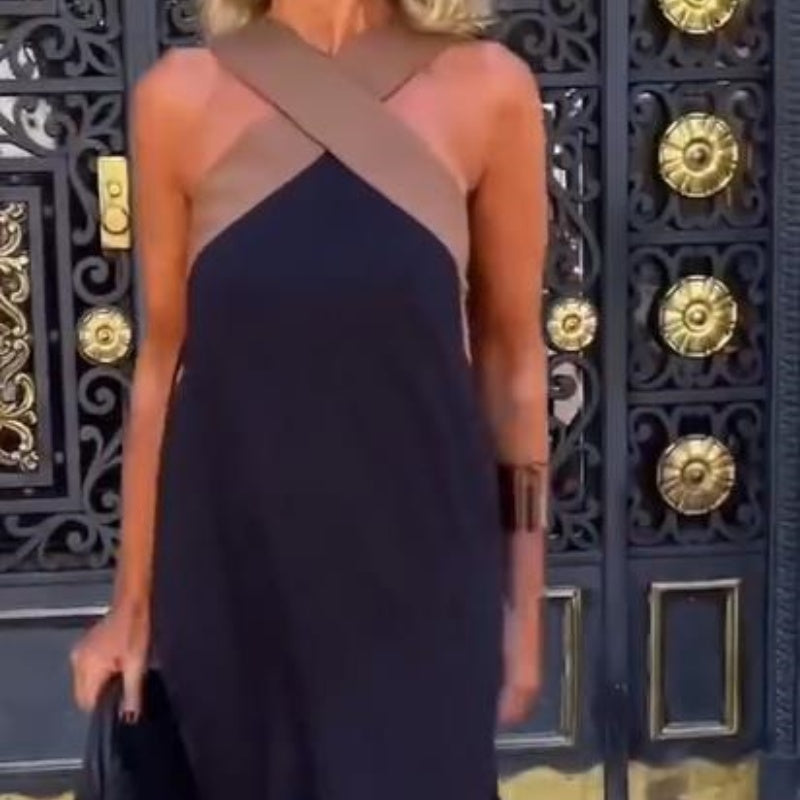 Elegant Cross Halterneck Sleeveless Flowy Dress