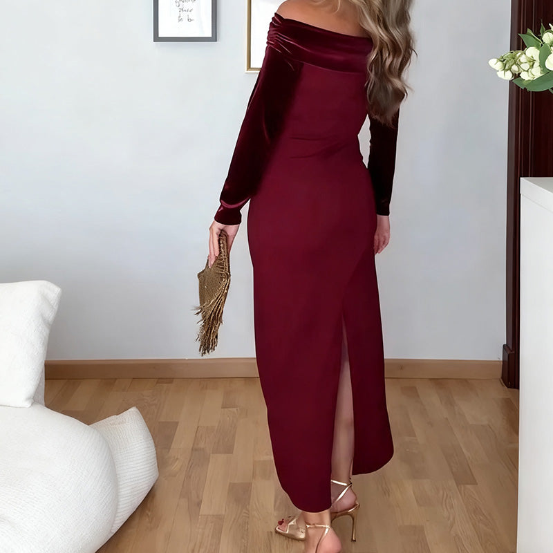 VERSATILE LONG-SLEEVE DESIGN - Offering graceful coverage for cooler weather, the long sleeves make this dress a perfect choice for autumn or winter events. It balances sophistication with practical comfort for any formal setting.