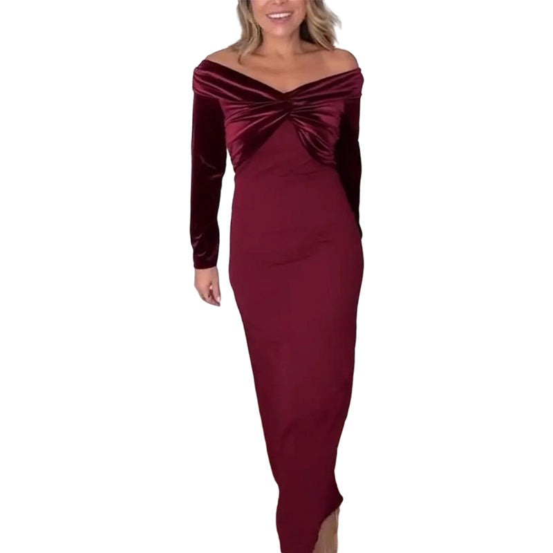 LUXURIOUS SPLICING - The contrasting velvet on the bust and sleeves adds a rich texture and a sense of opulence. This elegant detail elevates the dress, making you stand out with refined style.