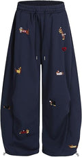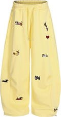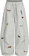 Embroidered puppy loose bucket casual elastic drawstring wide-leg sweatpants