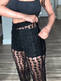 Expose Waist Blazer & Lace Pants Two Piece Set