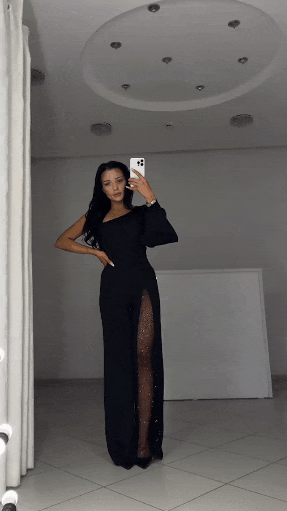 Fashionable And Sexy Off-The-Shoulder High-Slit Jumpsuit