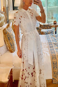 Floral Crochet Lace Short Sleeve Tie-up Shirt Maxi Dress
