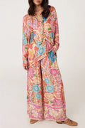 Floral Print Contrast Turndown Collar Long Sleeve Two Pieces