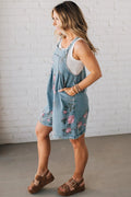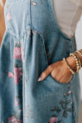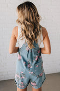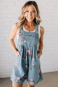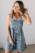 Floral Print Denim Shortalls