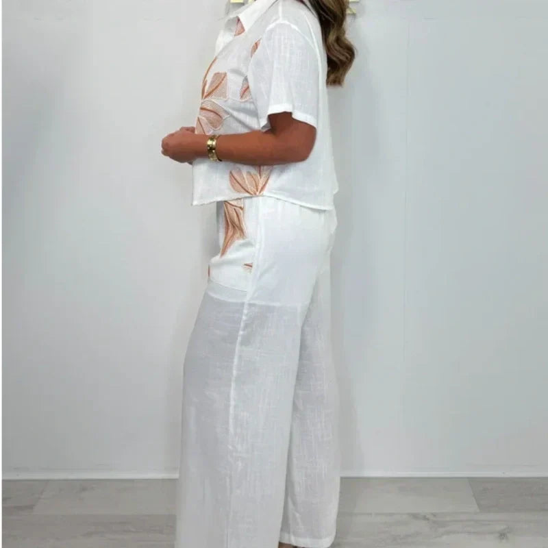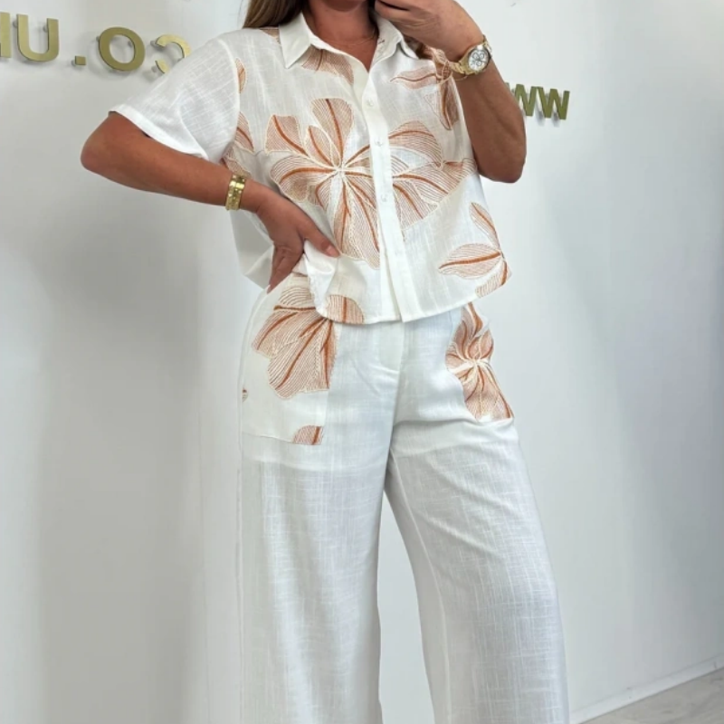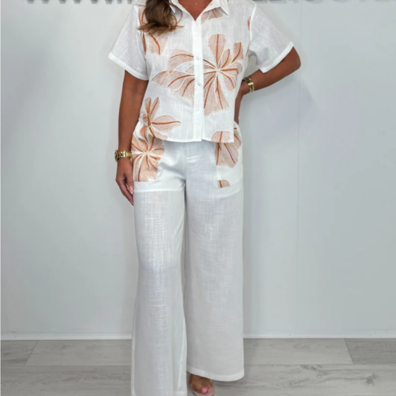Floral Short Sleeve Top & Wide Leg Pants 2-PCS Set