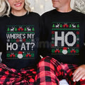 Funny Couples Christmas Sweatshirt Set | "Where's My Ho At?" Matching Shirt | Husband Wife Ugly Christmas Party Gear
