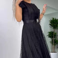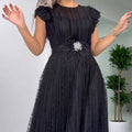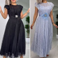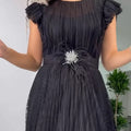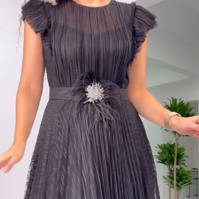 ELEGANT PLEATED DESIGN FOR A SOPHISTICATED LOOK: The pleated detailing on this dress adds texture and movement, creating a refined and stylish appearance. Perfect for both formal and casual occasions, it ensures you stand out with effortless elegance.