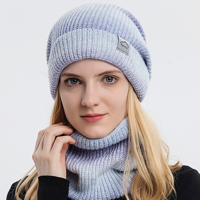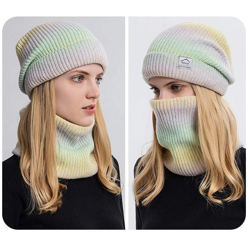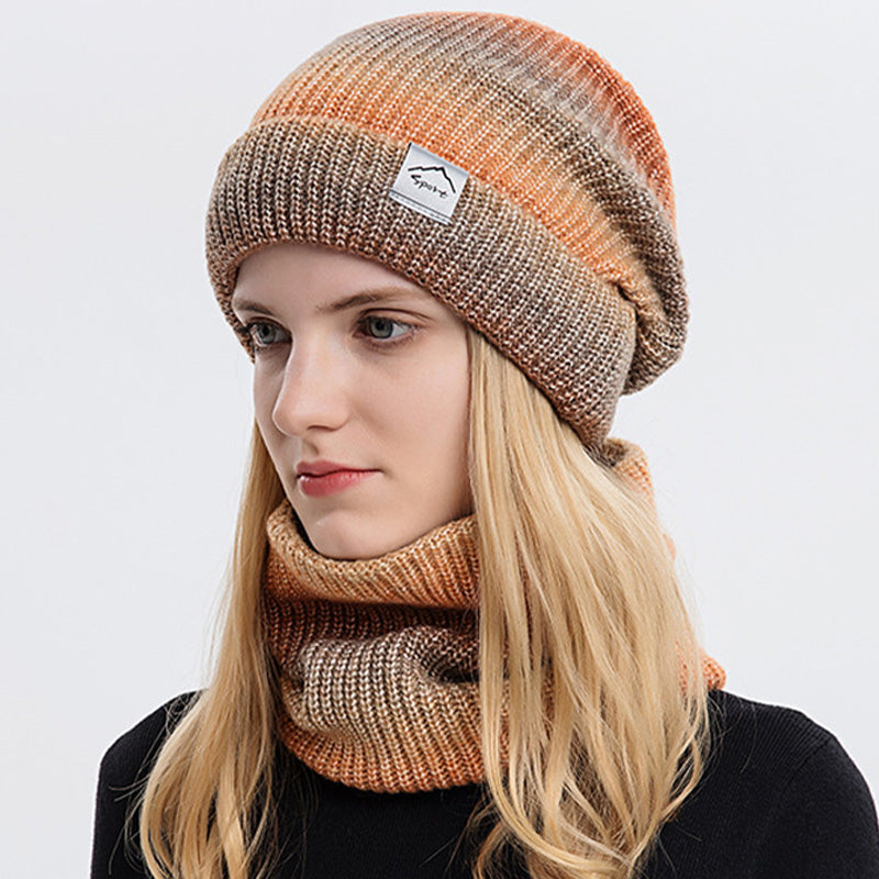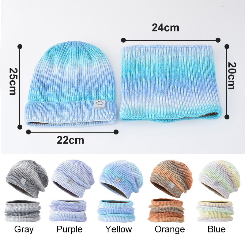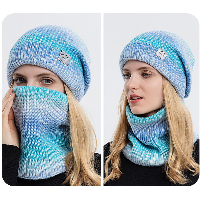 Gradient Color Warm Knitted Hat&Scarf 2-Piece Set