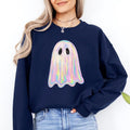 Celebrate the magic of Spooky Season with our Shimmering Ghost Halloween Sweatshirt, a perfect blend of cute and eerie that brings a touch of iridescent charm to your fall wardrobe.