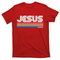 - Vintage Typography & Stripes: The bold, retro-inspired “JESUS” font paired with vibrant multi-colored stripes delivers a nostalgic vibe, while the “KING” accent reinforces the reverence for Christ. It’s a perfect blend of 70s-style aesthetics and spiritual expression.
