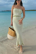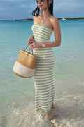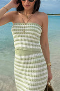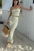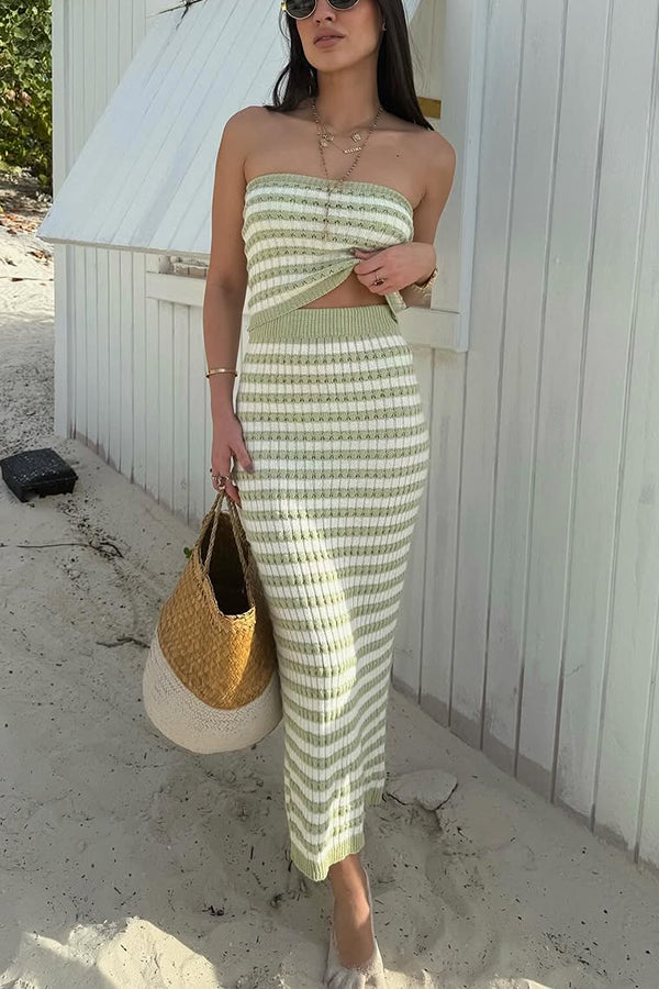 Knit Colorblock Stripes Bandeau Top and High Rise Stretch Maxi Skirt Set
