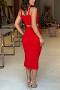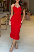 Knit Diamond Texture Cutout Waist Stretch Midi Dress