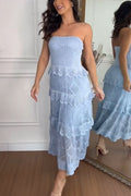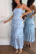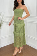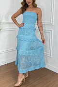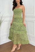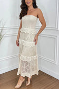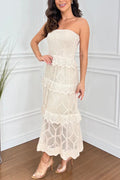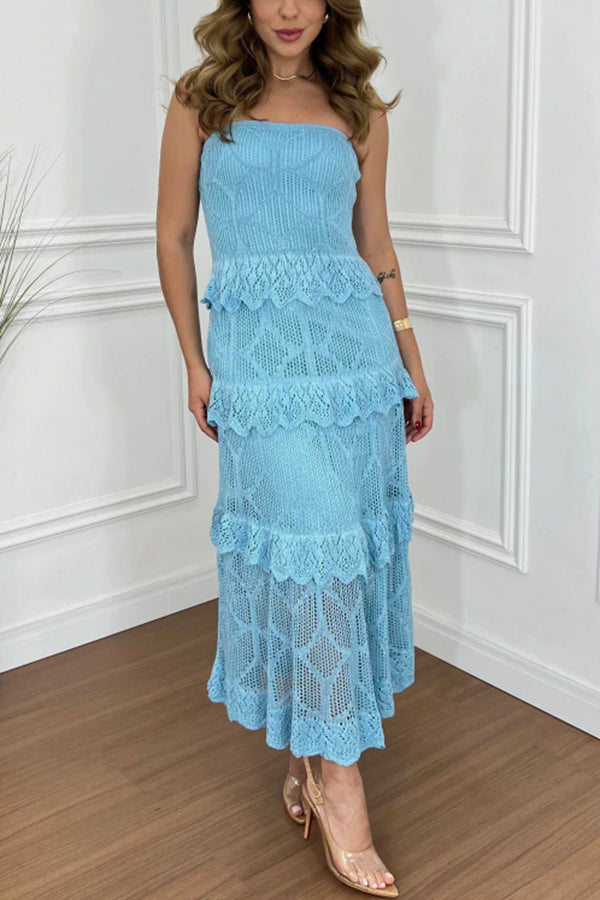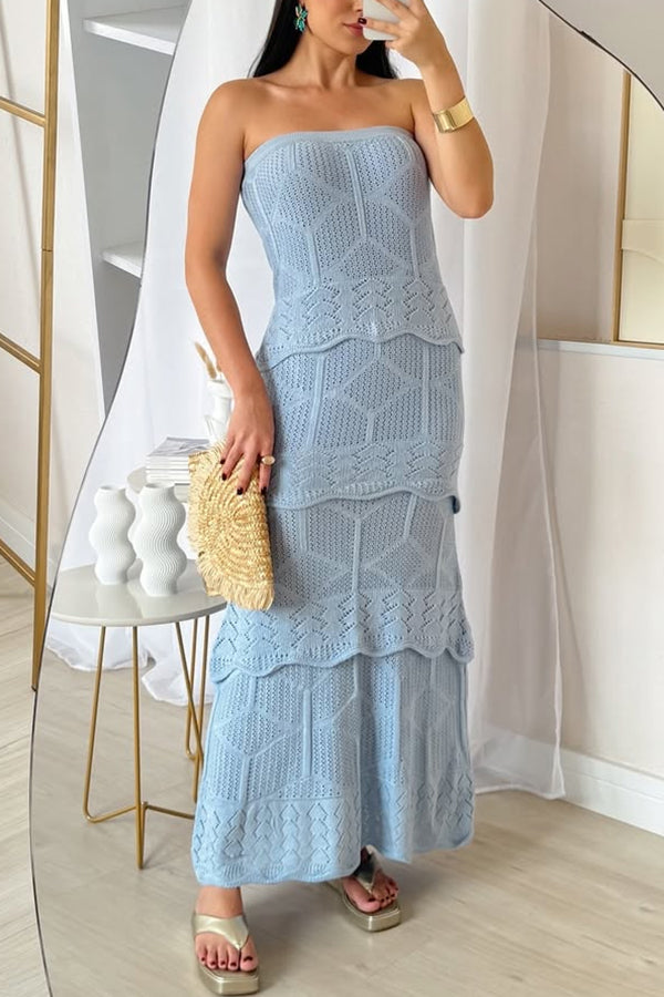 Knit Off Shoulder Tiered Ruffle Texture Stretch Maxi Dress