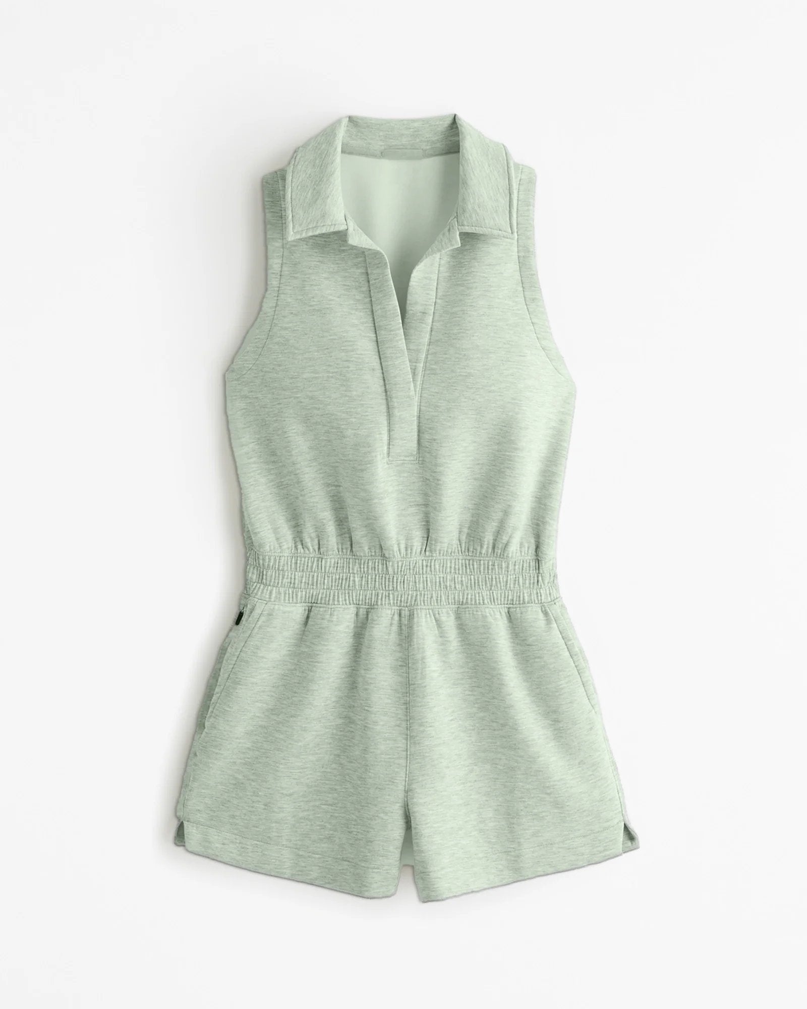 Our new easy-fitting active 3.5 inch (9 cm) romper in our KNIT fabric, that has a soft exterior with a smooth interior.