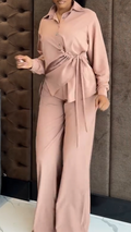 Ladies Lapel Drawstring Waist Design Casual Suit