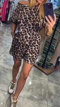 Elevate your style with this Ladies' Slanted Neck Leopard Print Top and Shorts Casual Set. Featuring a chic slanted neckline and bold leopard pattern, this set offers both comfort and trend-forward appeal—perfect for casual outings or lounging in style.