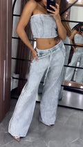 Ladies' Strapless Patchwork Top + Pants Casual Set