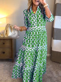 Our stunning new maxi dress with 3/4 length sleeves and V-neck. Complete with pockets and contrasting tiers, this dress offers both style and functionality. Perfect for any occasion, it effortlessly combines comfort with elegance.
