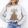 Leopard Print Christmas Tree Dalmatian Bow Crewneck Sweatshirt