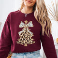 - Embrace the festive spirit with our Leopard Print Christmas Tree, Dalmatian Bow, Santa, Cute, Girly Sweatshirt.