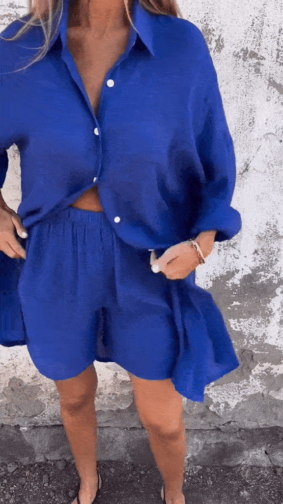 Introducing our lightweight linen button-up set, a perfect blend of comfort and style for every season. This versatile set includes a long-sleeved shirt and matching shorts, making it ideal for casual outings, travel, or relaxed home wear.