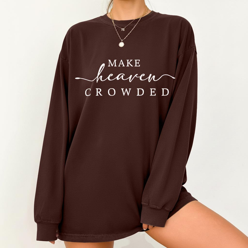 Elevate your faith-inspired wardrobe with our “Make Heaven Crowded” Sweatshirt — where spiritual purpose meets effortless fashion. Featuring the heartfelt “MAKE heaven CROWDED” slogan, this piece is a bold testament to your beliefs, crafted with cozy, on-trend design.