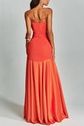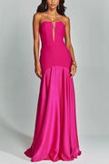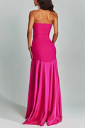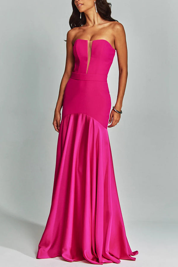 Mermaid Style Off Shoulder Sheer V-neck Satin Hem Party Maxi Dress