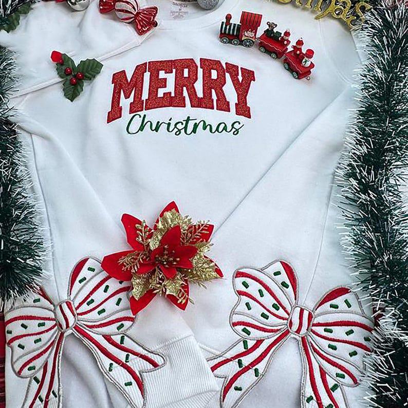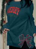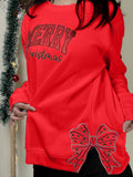 Merry Christmas Side Bow Embroidered Sweatshirt