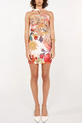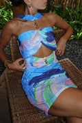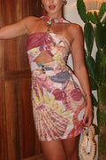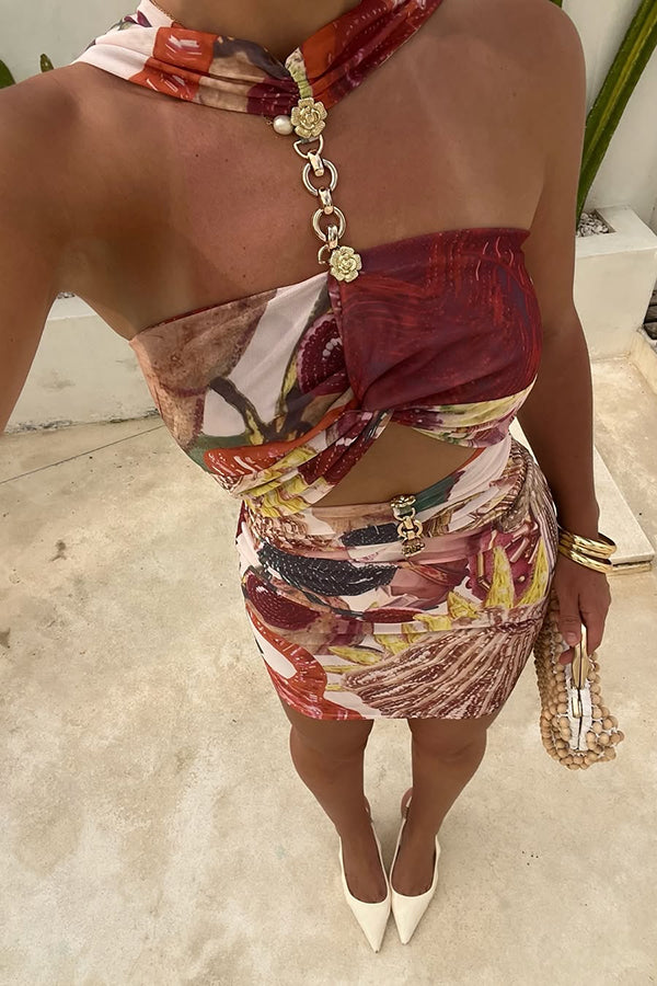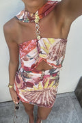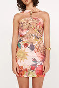 Mesh Rosette Hardware Cutout Ruched Stretch Mini Dress