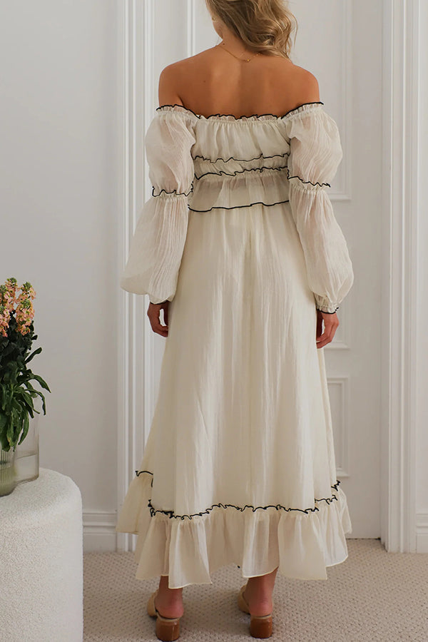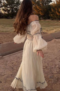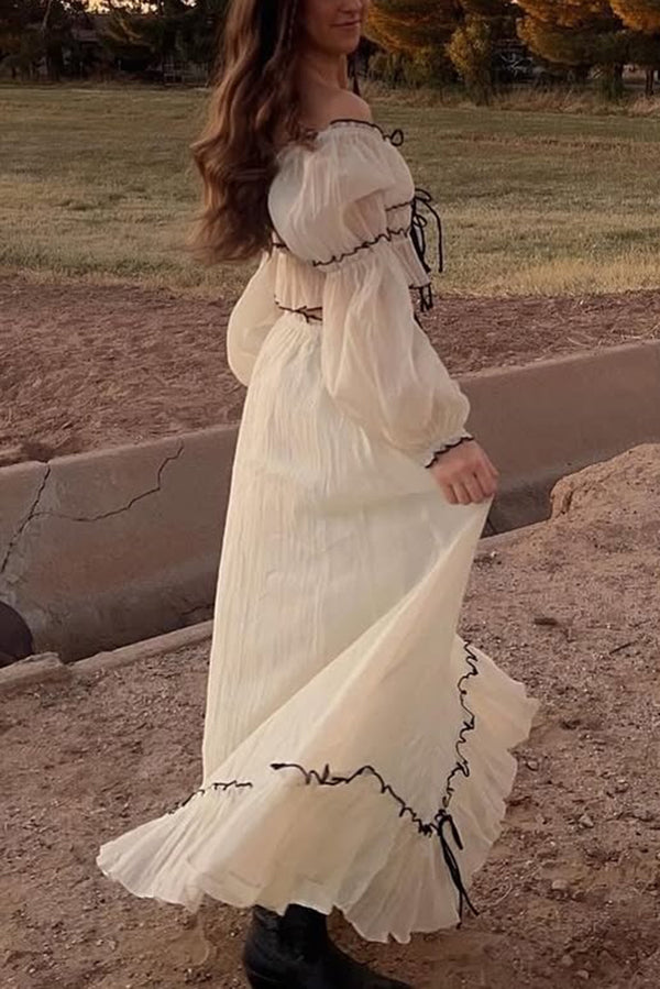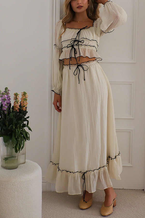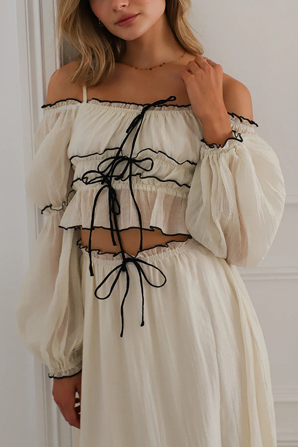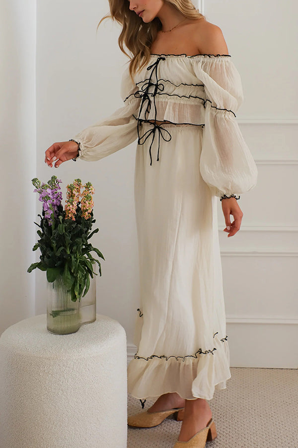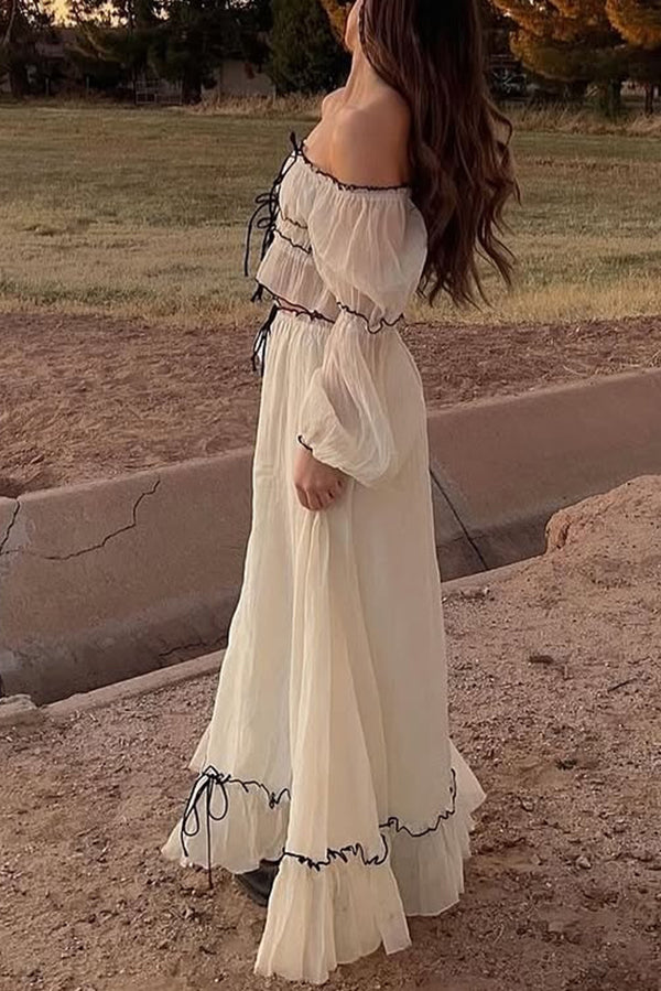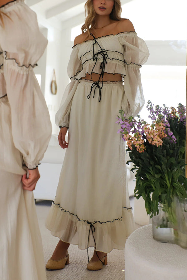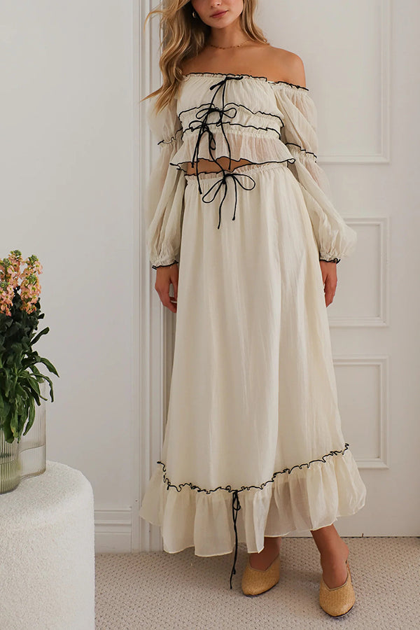 Off Shoulder Pleated Tie Top and Maxi Skirt Set