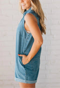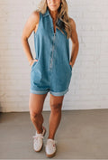 Ditch the sleeves and elevate your denim game with our On Point Romper. Zip yourself into effortless style and all-day comfort. (Sleeveless denim perfection at its finest!)