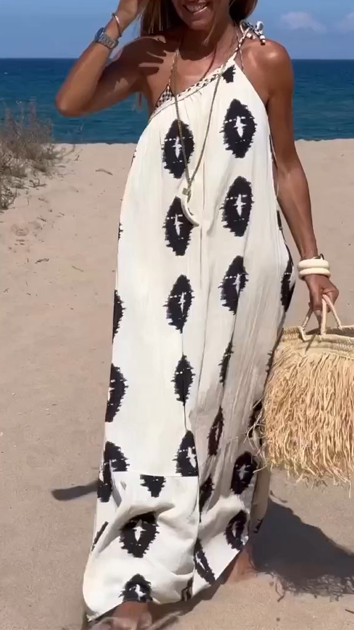 One Shoulder Strap Printed Casual Commuter Dress