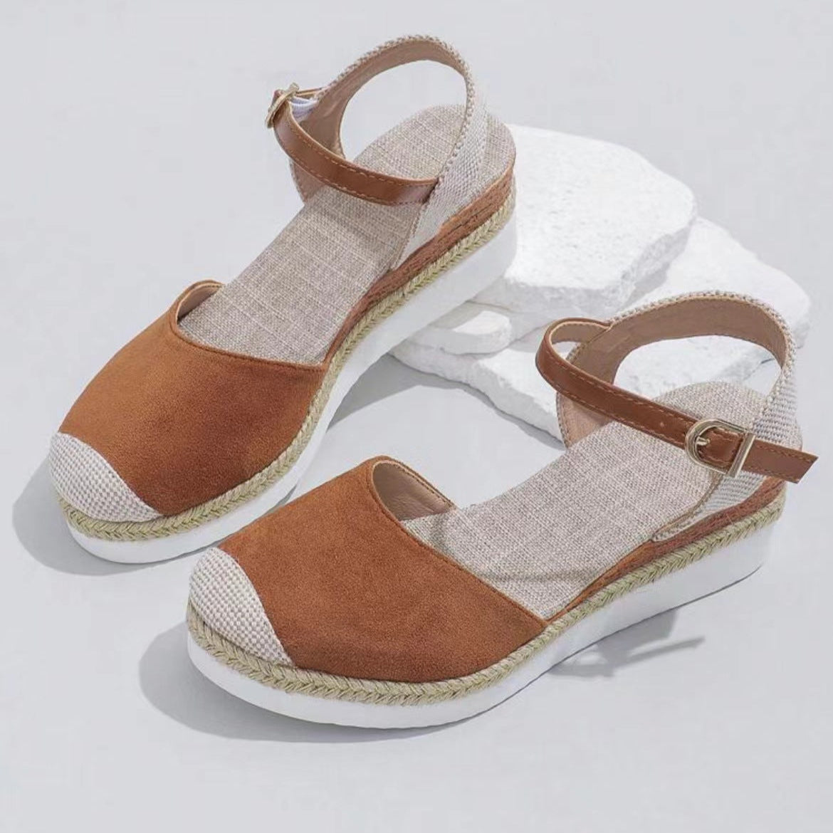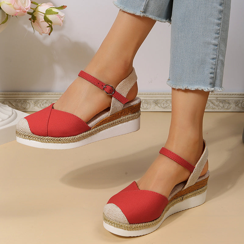 Patchwork Closed Toe Wedge Sandals