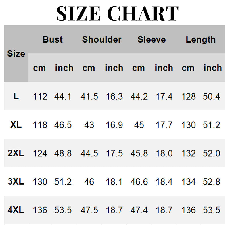 Size: L, XL, 2XL, 3XL, 4XL
