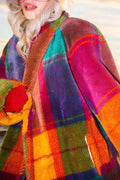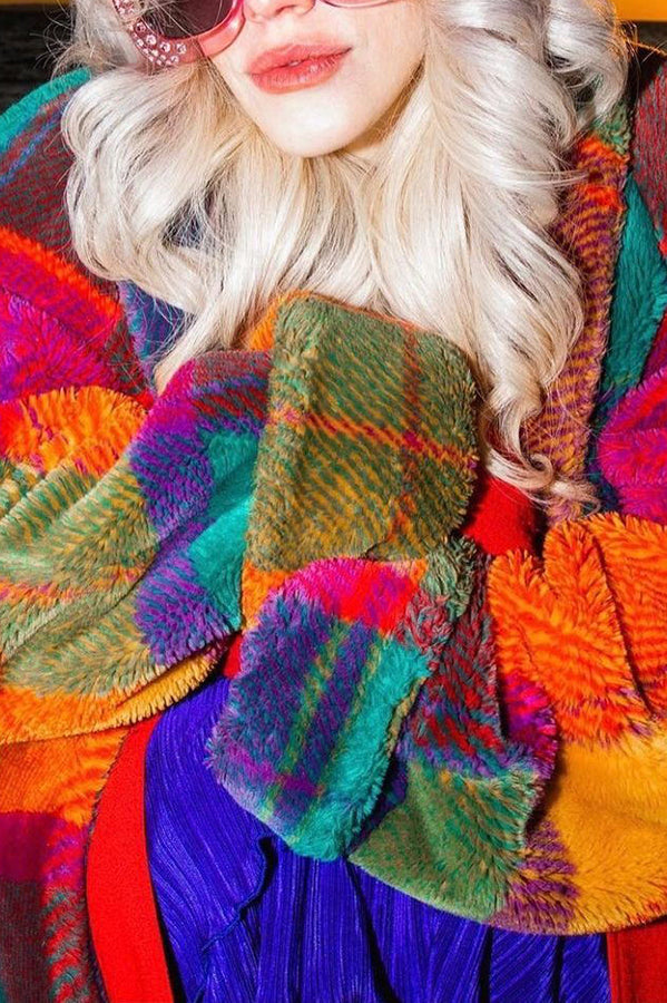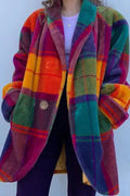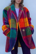 Plush Lined Lapel Color Blocked Long Sleeved Coat