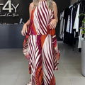 Package Includes:1*Printed High-Low Halter Top & Wide Leg Pants Set