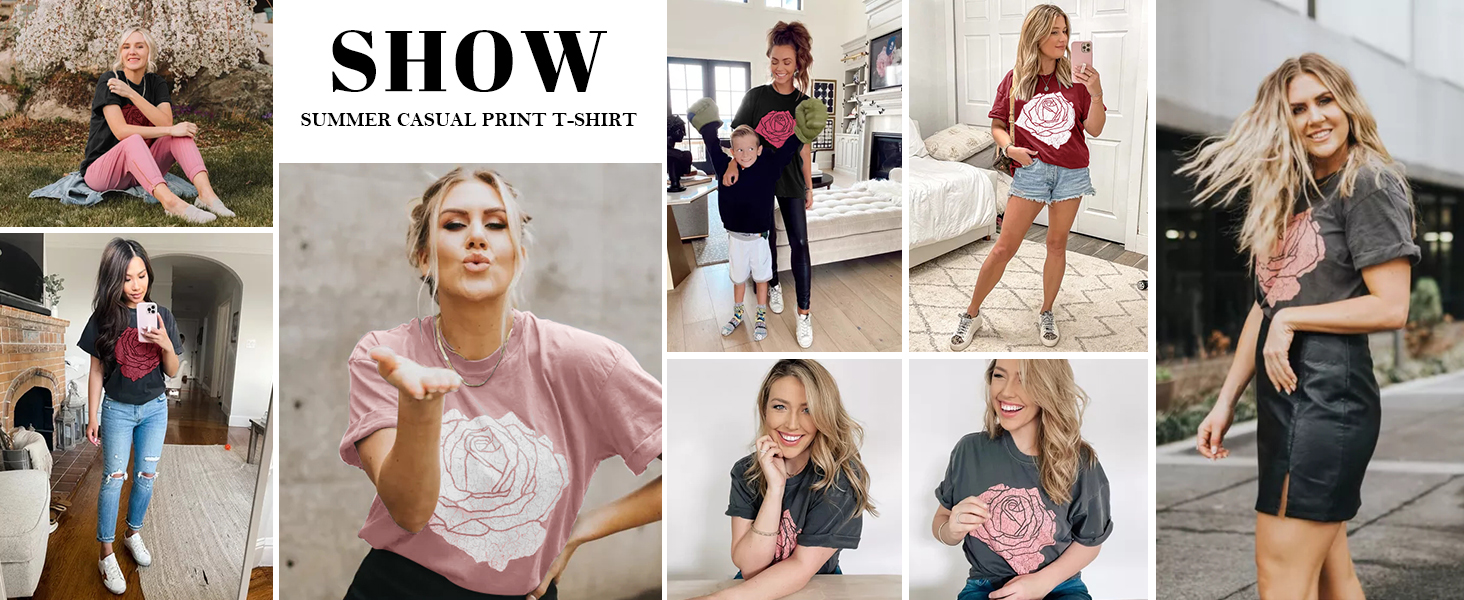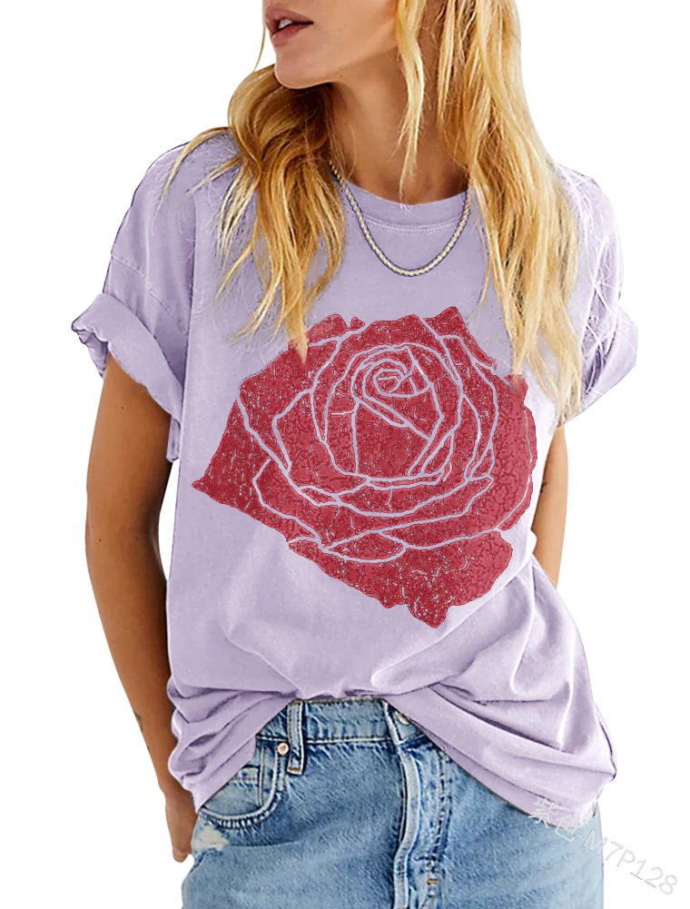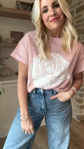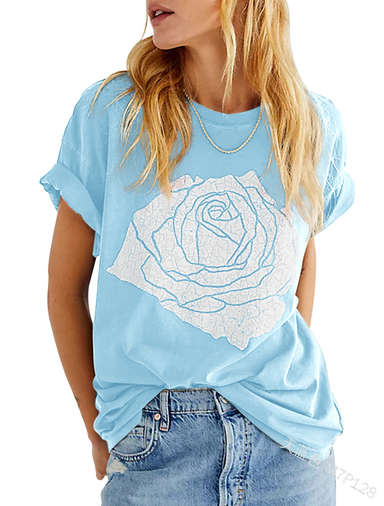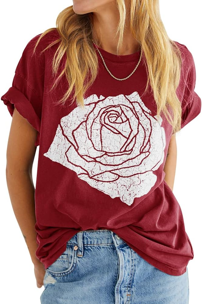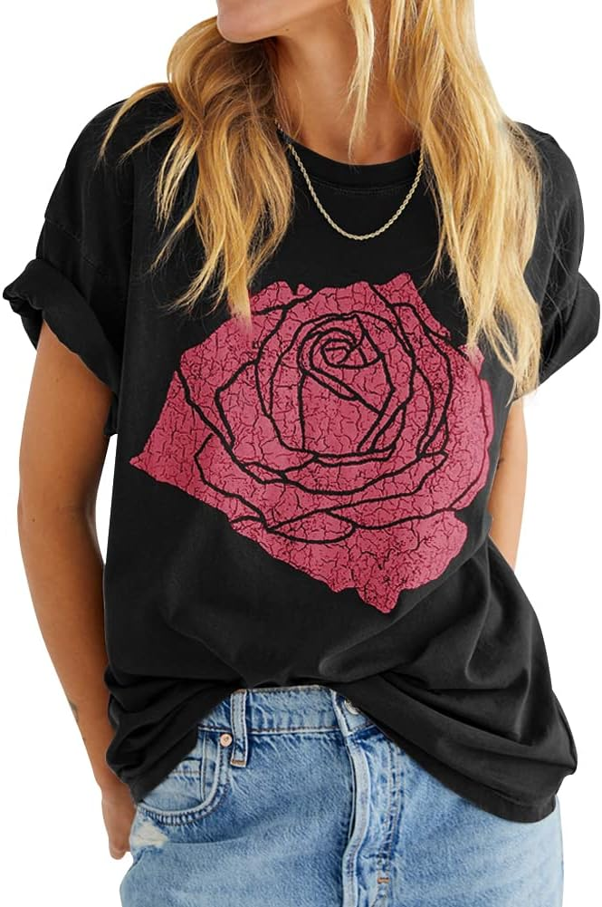Elevate your casual look with our Crew Neck Rose Graphic Tee. Made with soft fabric and a flattering boyfriend cut, this vintage-inspired shirt is a versatile must-have. Pair it with shorts, leggings, or jeans for a stylish outfit.