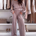 Round-Neck Top & Wide-Leg Pants 2-Piece Set