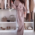 CLASSIC 2-PIECE SET: This timeless 2-piece set features a classic round-neck top paired with wide-leg pants. It’s a versatile wardrobe staple, perfect for creating a polished yet comfortable outfit.