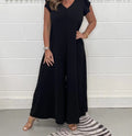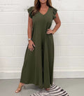 Ultimate Comfort: This V-neck, solid color fly sleeve jumpsuit is the epitome of comfortable fashion. Crafted with a relaxed fit in mind, it features an elastic waistband that ensures softness and comfort all day long. The wide-legged design drapes beautifully for a perfect fit, making this jumpsuit an ideal choice for vacation, beach outings, lounging, workouts, and everyday occasions!