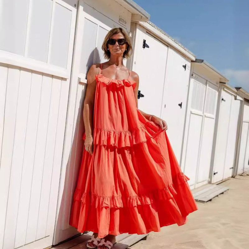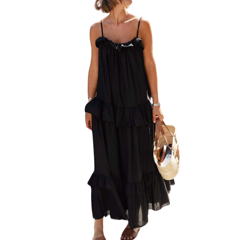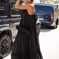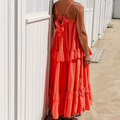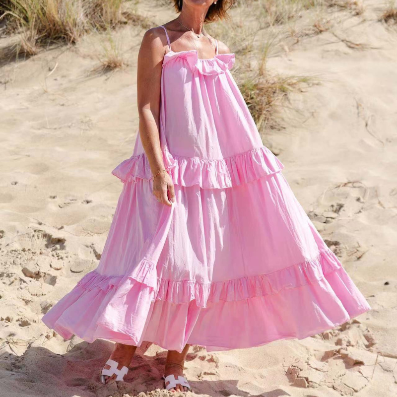 Sexy Solid Color Ruffle Flounce U Neck Sling Dresses