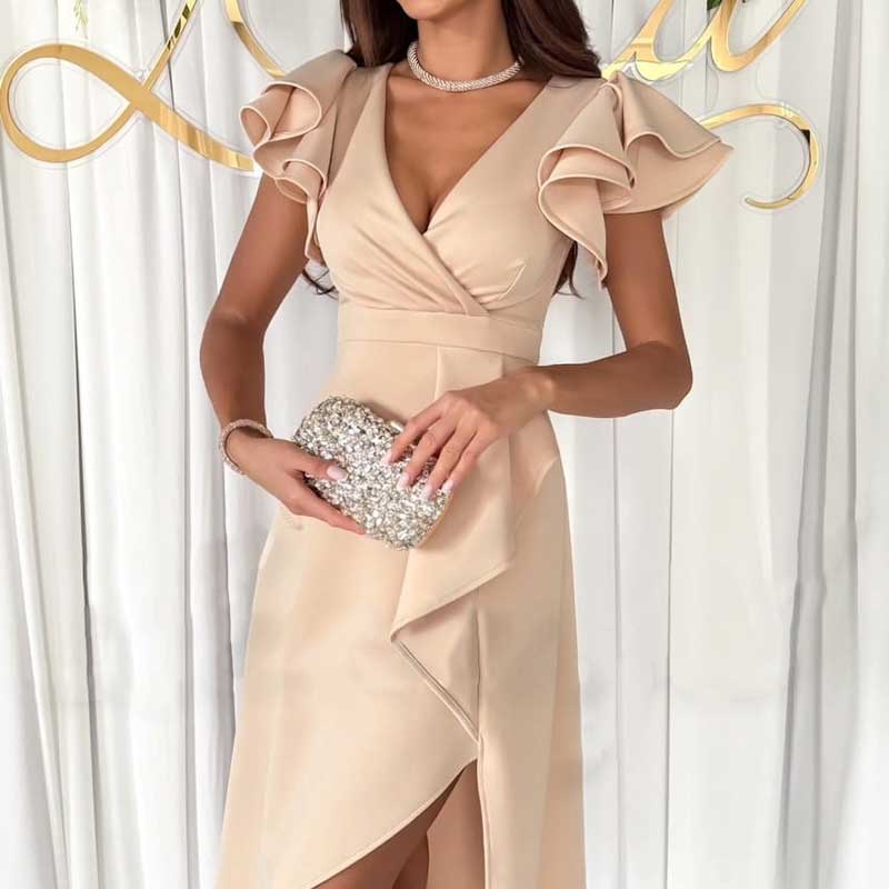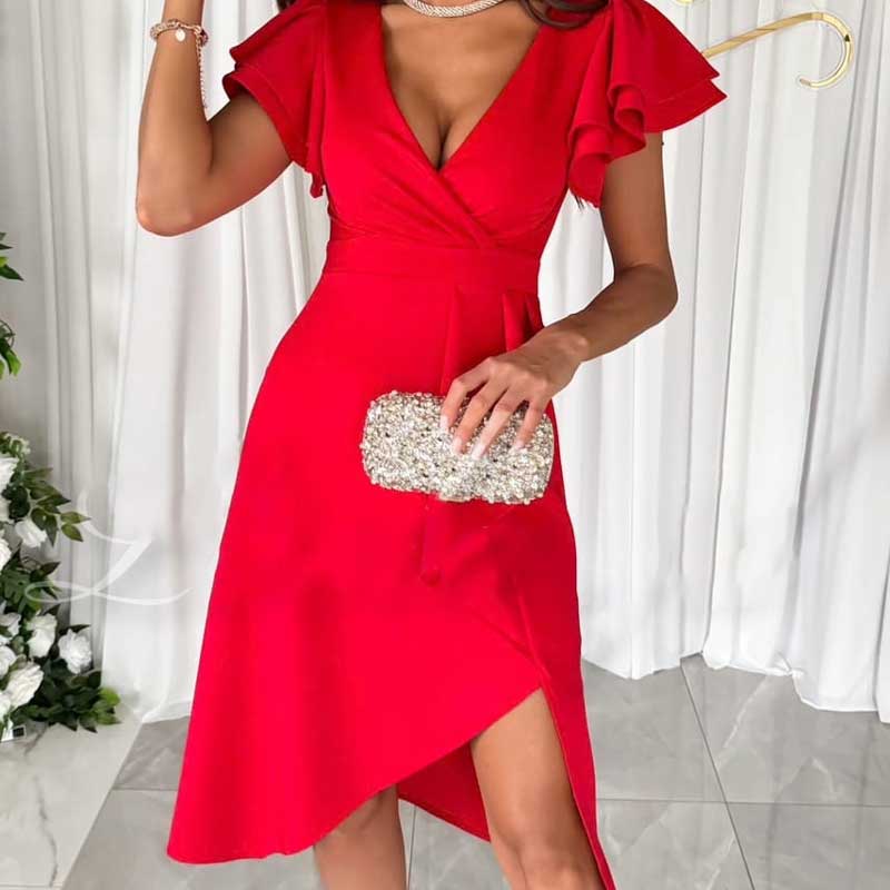 Package Include:1*Sexy V-Neck Flutter Sleeve Dress