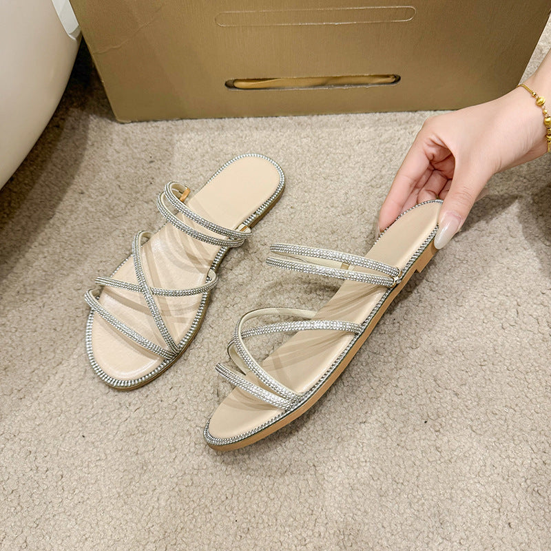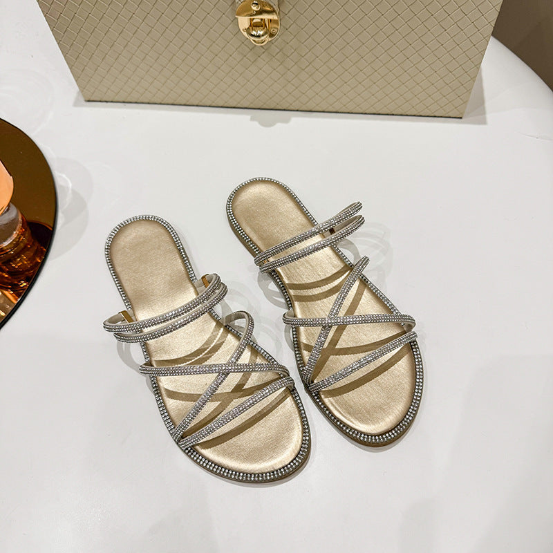 1 x Pair of Shiny Rhinestone Casual Soft-soled Slippers