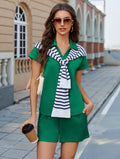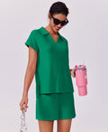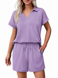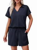 Short Sleeve Sweatshirt V-neck Tops and Drawstring Shorts Outfits Tracksuit