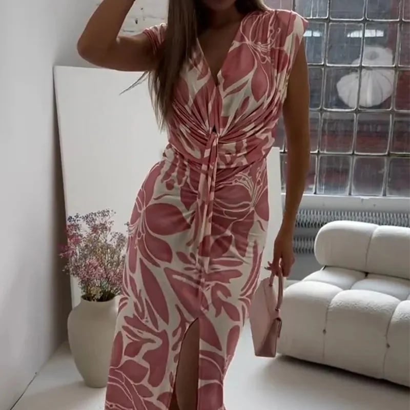 Package Includes: 1×Sleeveless Printed Slit Dress