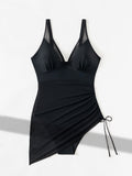 Slimming and fashionable: This women's one-piece swimsuit features a mesh sheer V-neck and sarong wrap, which looks fashionable and sexy. The tummy control design and ruched design highlight your figure, combining modesty with sexiness.