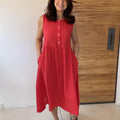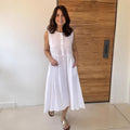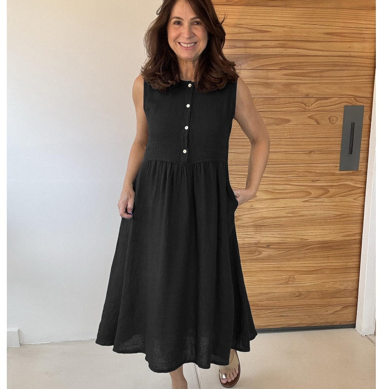INVISIBLE AND PRACTICAL SIDE POCKETS - The dress features side pockets that blend seamlessly into the design, without compromising the overall flow of the silhouette. The pockets are deep enough to hold small essentials, offering practicality without affecting the dress’s elegant appearance.