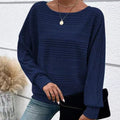1 * Solid Round-Neck Striped Top with Long Sleeves